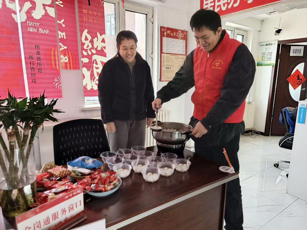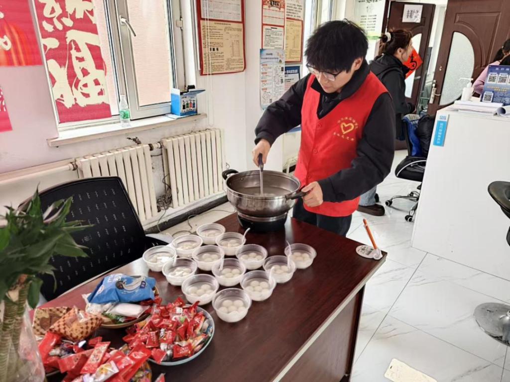 午饭时分,志愿者们分工协作、耐心细致地为大家烹煮汤圆。火候把控、汤圆下锅、适时盛出,每一个步骤都认真细致,确保汤圆香甜软糯、口感适宜。热气腾腾的汤圆出锅后,老人们围坐在一起,开心品尝着香甜可口的汤圆,话家常、聊节日,现场暖意融融,欢声笑语不断,浓厚的团圆喜庆氛围充盈着整个活动现场。