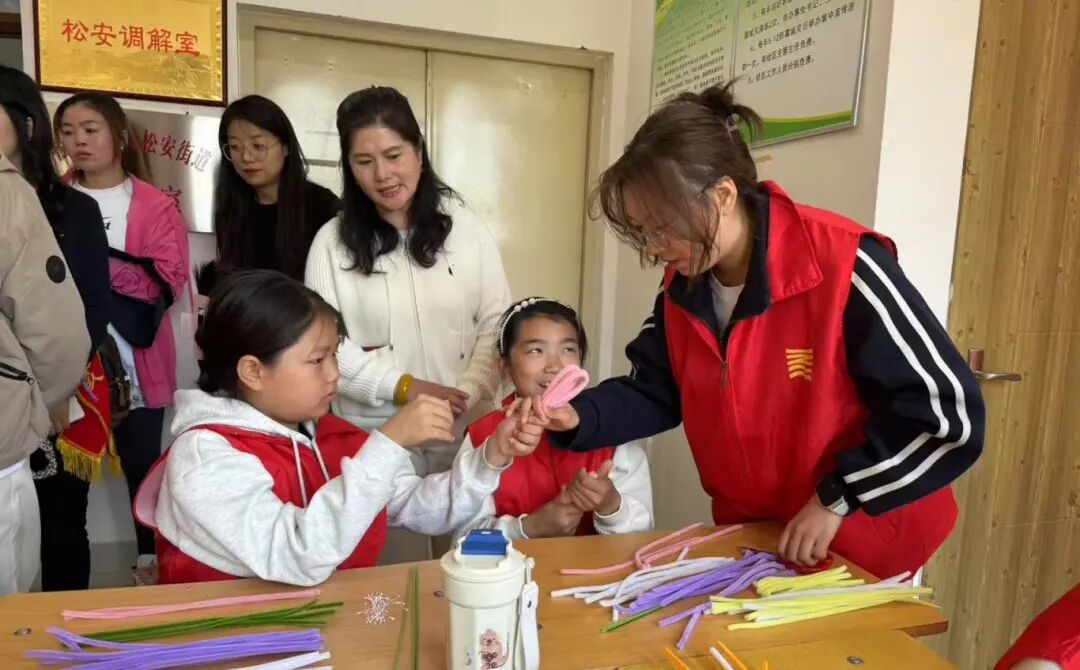 艺术与教育学院走进国粹园社区,将课业辅导与手工创作相结合,用陪伴在孩子心中播撒奉献的种子;人居环境学院联合希望树乡村振兴项目组,以明信片、石膏彩绘为载体,架起城市学子与山区留守儿童的心灵桥梁;外国语学院赴长岭中心小学开展爱心捐赠,以八年坚守延续“三下乡”薪火,将校地共建成果转化为守护少年成长的温暖力量。