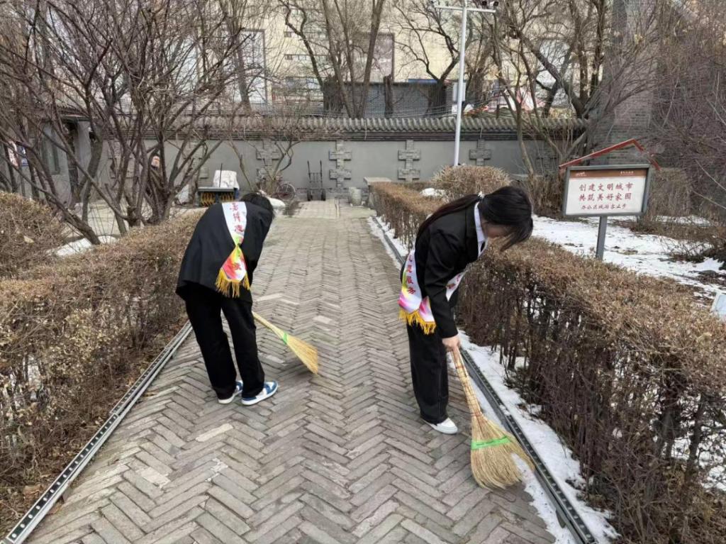 参观结束后,党员带头、团员跟进,志愿者们迅速投身志愿服务。大家发扬铁人苦干实干精神,分工协作开展故居院落、陈列区域的清洁整理,维护参观秩序,全程细心呵护文物古迹;部分学生党员、入党积极分子化身志愿讲解员,为游客提供指引答疑,将所学红色知识转化为服务实践,尽显哈石油学子的志愿担当,获得故居工作人员高度认可。