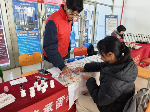 活动采用线上宣传动员、线下实践体验相结合的形式开展。线上依托平台开启报名通道,同学们扫码即可登记参与,平台实时发布活动预告、志愿指南与温馨提示,打破时空限制,吸引大家踊跃参与,营造出浓厚的志愿氛围。线下活动形式丰富、趣味十足,现场设置手绘石膏娃娃、创意手串、手写明信片、爱心手印、多肉养护等多项创意体验环节,将志愿服务与美育实践、爱心行动深度融合,同学们欢聚一堂、其乐融融,在温馨互动中传递温暖与爱心。