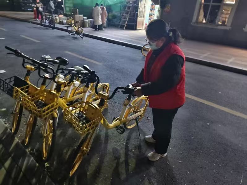 活动开始,志愿者们利用课余时间针对校园内教学楼下,主干道,快递站门口的共享单车乱停乱放和地面整洁问题,逐一将违规停放的车辆搬运至指定停放区域,确保车辆排列有序。随后志愿者们开始着手清理地面,他们弯腰俯身,认真捡拾地面上的烟头、纸屑、塑料瓶等垃圾,尤其对草丛深处、石缝之间、垃圾桶周边等地点进行重点清理,不放过任何一个卫生死角,用耐心和细心还原校园的洁净本色。