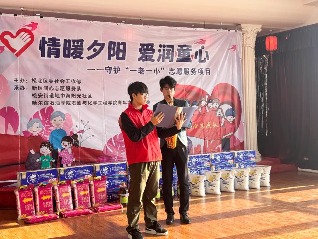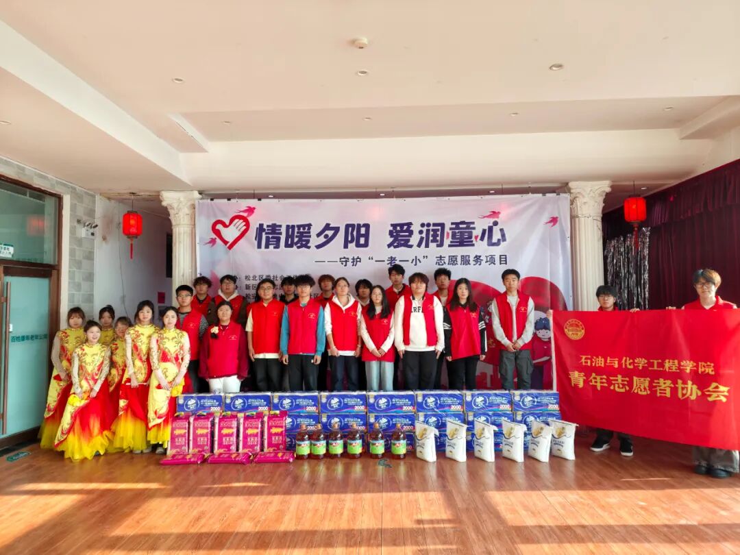 为弘扬志愿服务精神,传递尊老爱老正能量,切实践行社会责任,2025年11月15日,在松北区委社会工作部指导下,由新区润心志愿服务队、松安街道地中海阳光社区与石油与化学工程学院青年志愿者协会联合主办的 “情暖夕阳 爱润童心” 守护一老一小志愿服务项目于哈尔滨百姓康年老年公寓温馨启幕,我校冯海龙老师带队参与本次志愿服务活动。