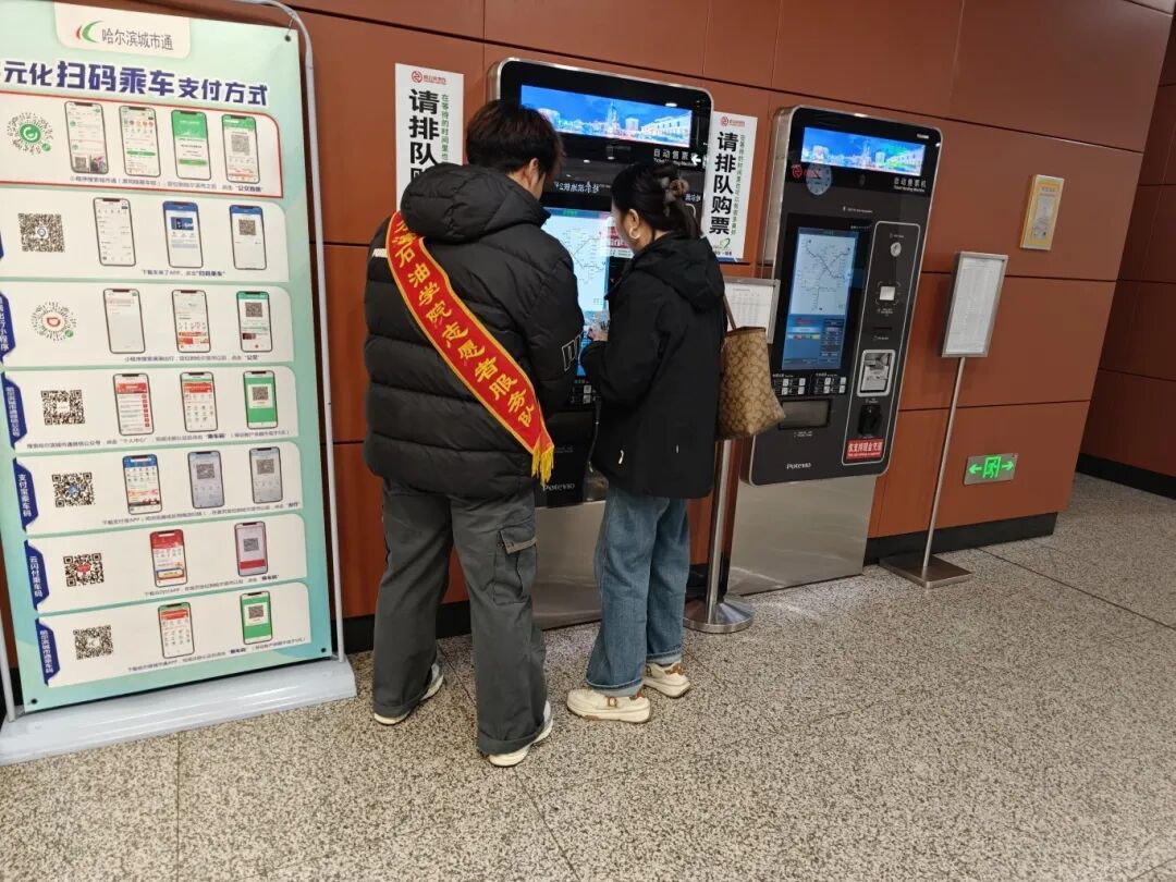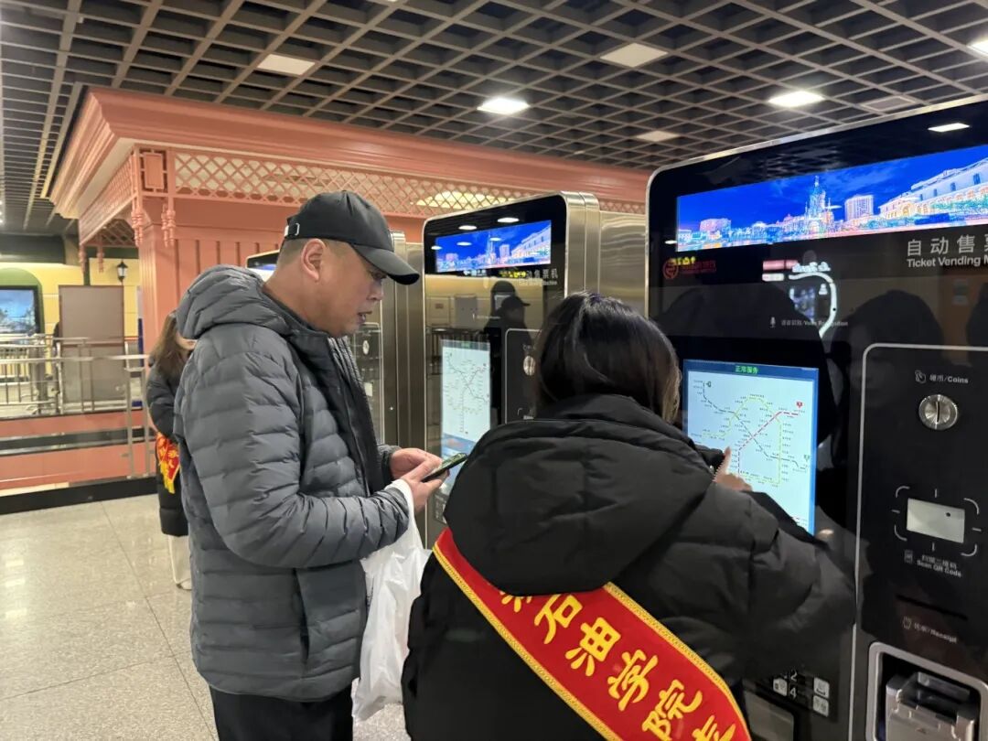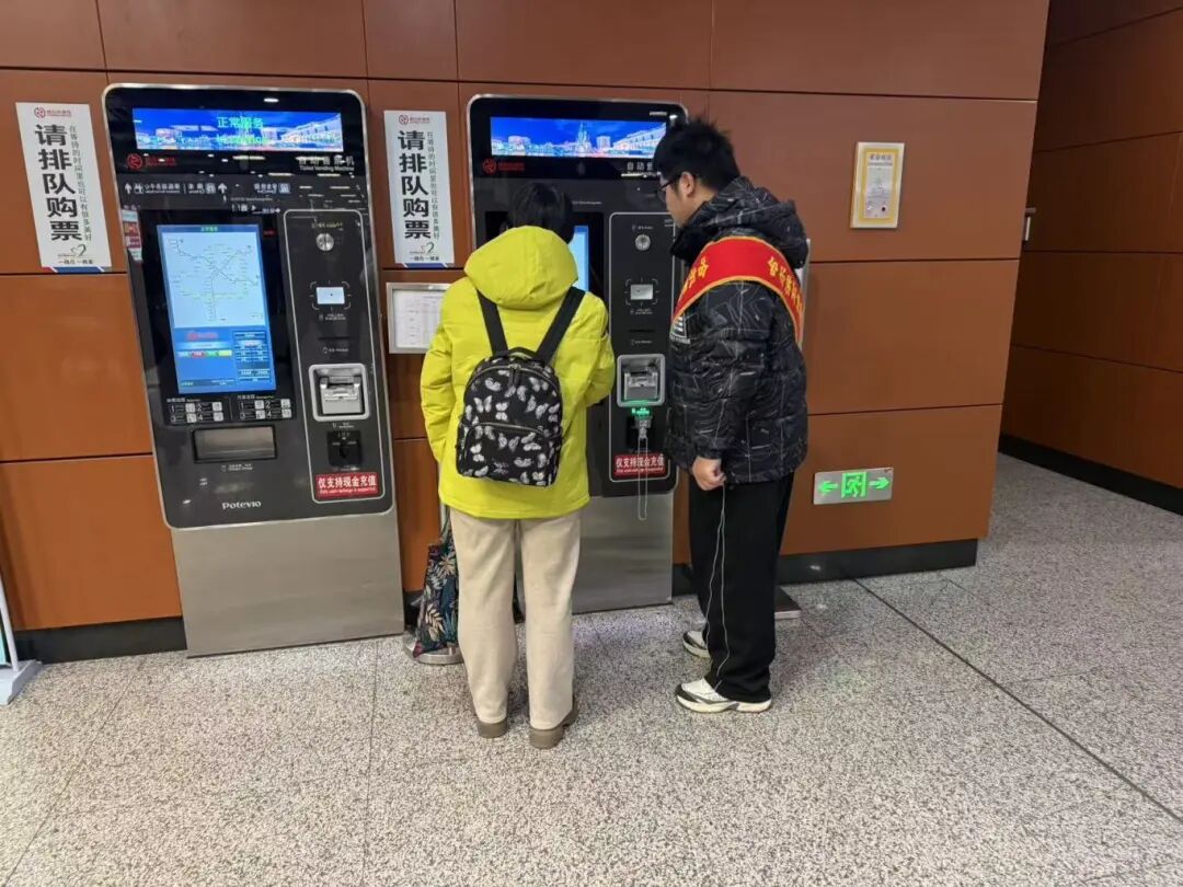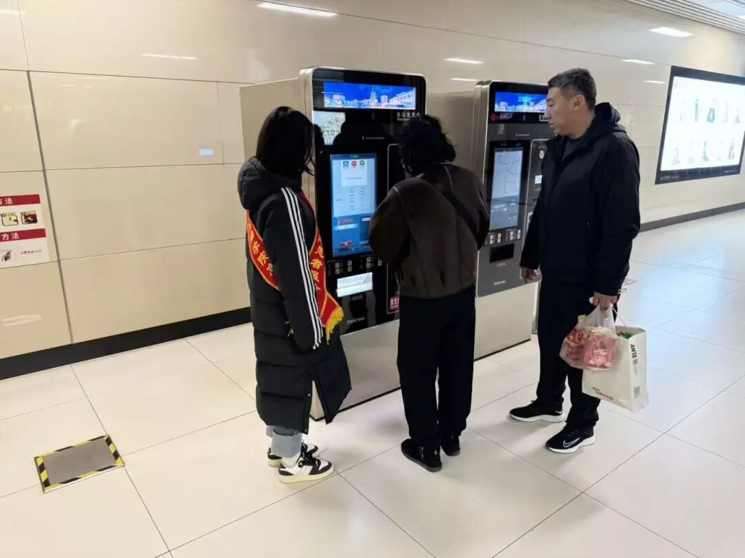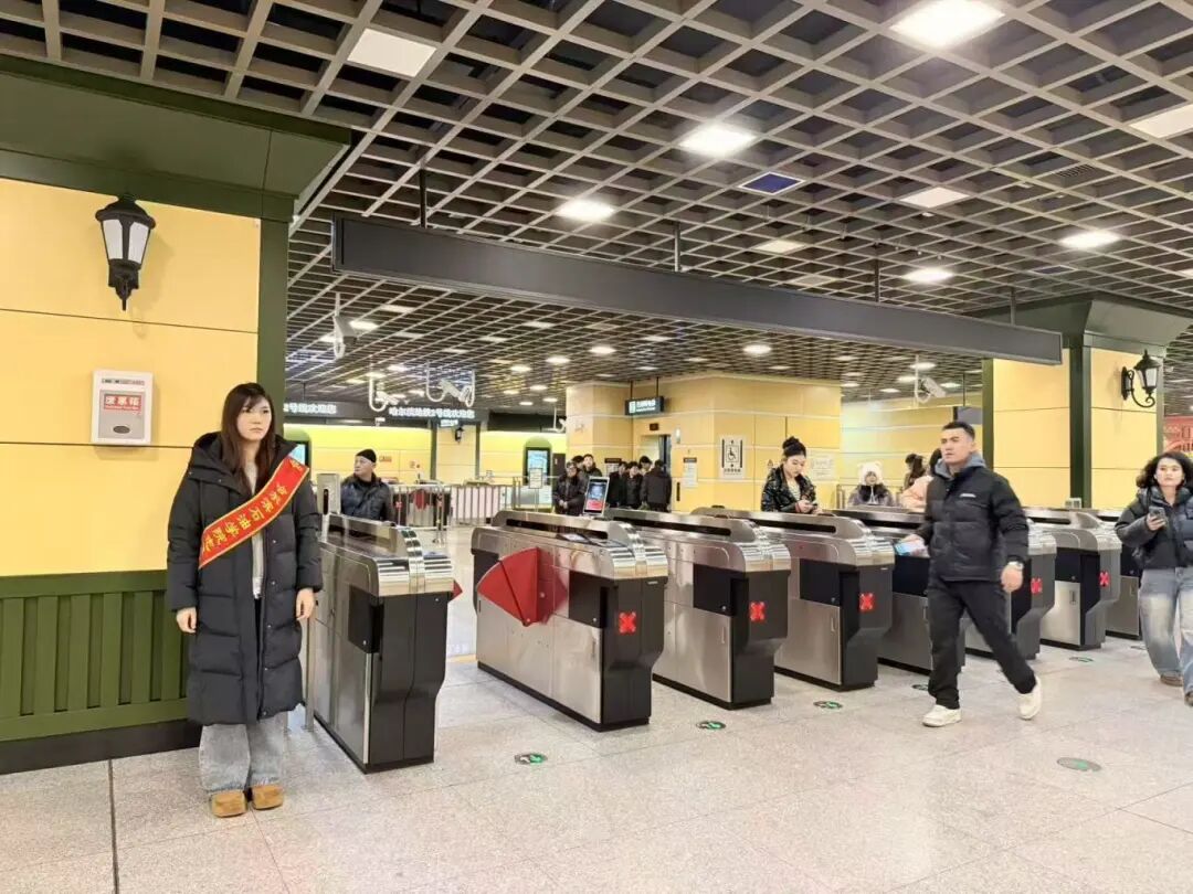 活动期间,身着统一绶带的志愿者们在不同区域开展志愿服务:在售票区,协助乘客快捷操作自助设备,让购票流程高效顺畅;在进出站口,进行分流指引,保障乘客安全有序通行;在站台层,耐心引导乘客快速疏散、文明乘车。同时,主动为残障人士等特殊群体提供帮扶,协助其完成进出站流程,守护每一位乘客的出行安全。