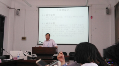 史博士就隐性课程的整体研究情况展开主题探讨,他从五个方面(研究背景、文献提炼和理论铺垫、研究设计、研究发现与研讨和创新点与不足)与参会的大学英语教师们进行了充分交流,并就教师们所关心的该领域的前沿问题给予了详尽的解答。