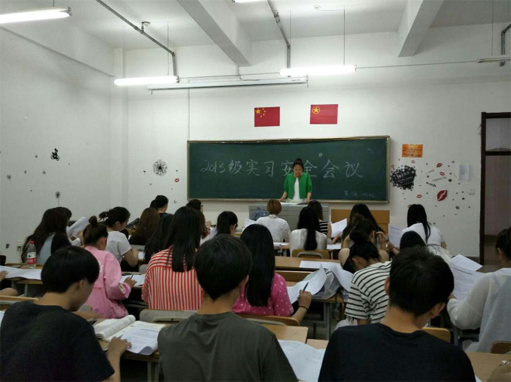 2016年6月7日外语学院团总支书记孙晓萍带领外语学院2013级英语专业的同学在508教室召开了2013级学生实习安全会议。