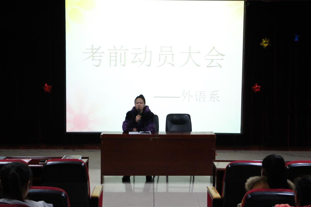 为促使15级新生第一学期期末考试顺利进行,提高同学们对期末考试的重视程度。12月11日中午,哈尔滨石油学院外语系在主教518教室召开考前动员大会。外语系导员孙晓萍出席了此次会议,全体学生参会聆听。