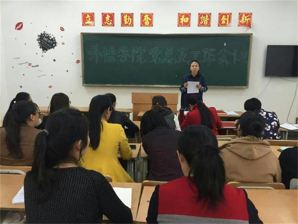 为了贯彻落实我院2016年党委工作要点,传达学院党委会议的相关精神,外语学院于2016年3月29日下午在主楼510教室召开了外语学院党总支工作会议。会议由外语学院党总支组织委员孙晓萍主持,外语学院全体党员同志参加会议。