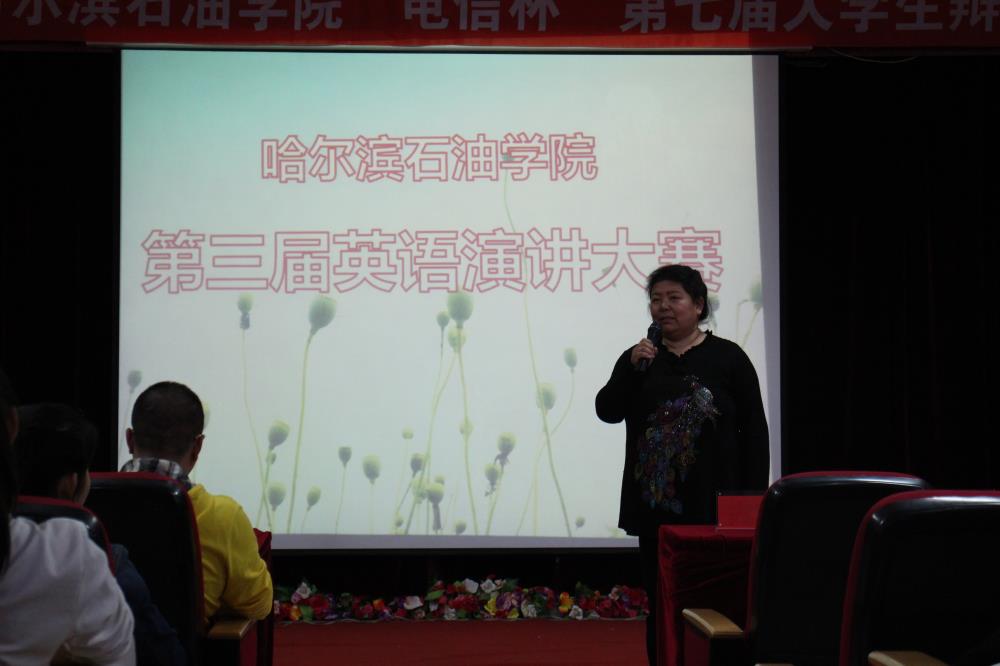 为了营造英语学习氛围,丰富校园文化,哈尔滨石油学院外语学院在5月10日举办了哈尔滨石油学院第三届英语演讲大赛决赛。比赛正式开始前,外语学院院长王莉娅教授向选手和观众致辞,阐述了英语演讲比赛的意义和王院长对所有选手的殷切祝福。比赛历时80分钟,包括自拟题目演讲和即兴演讲两个环节。每个参赛的选手都充分展示了扎实的语言功底、高超的演讲技巧和朝气蓬勃的风貌。