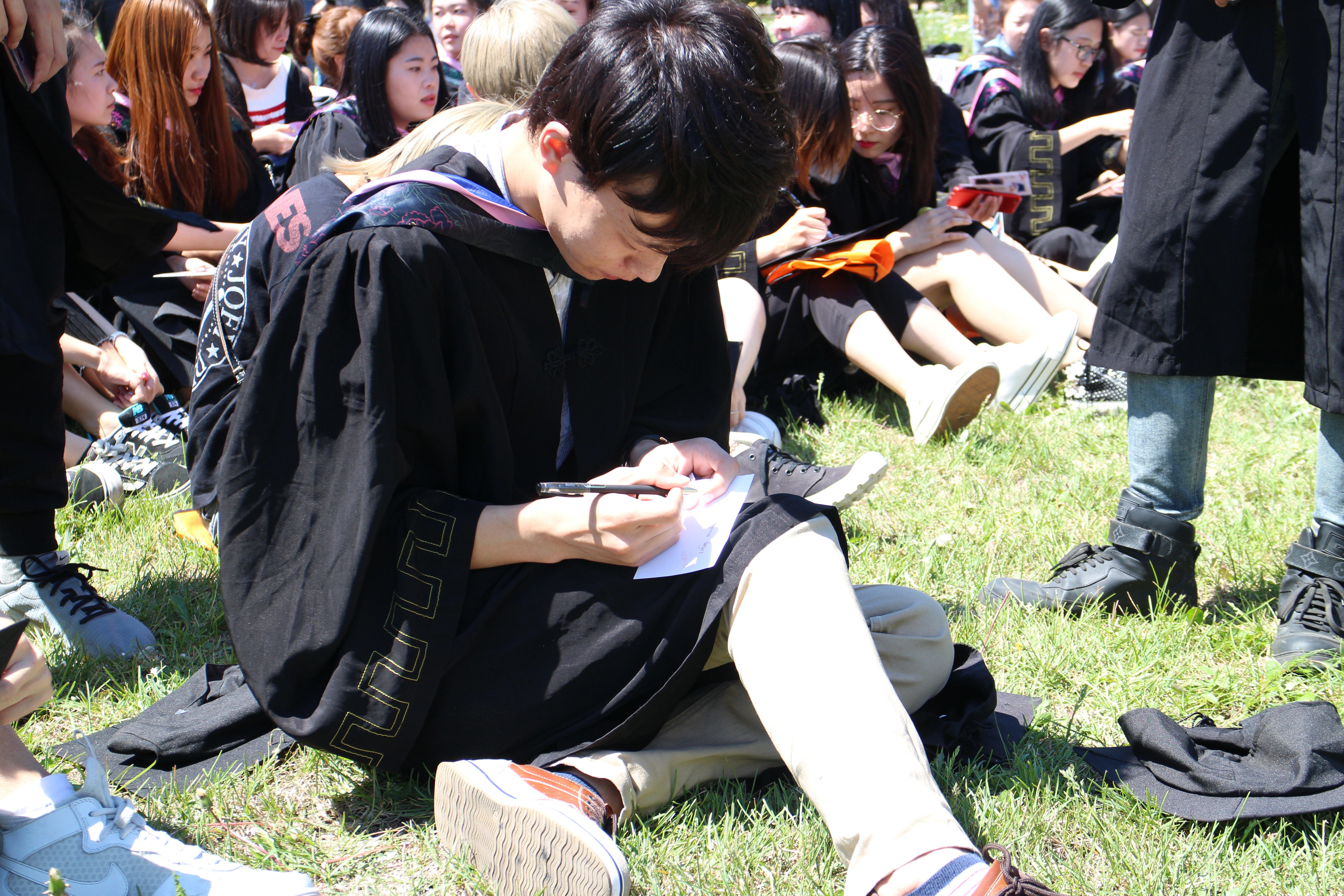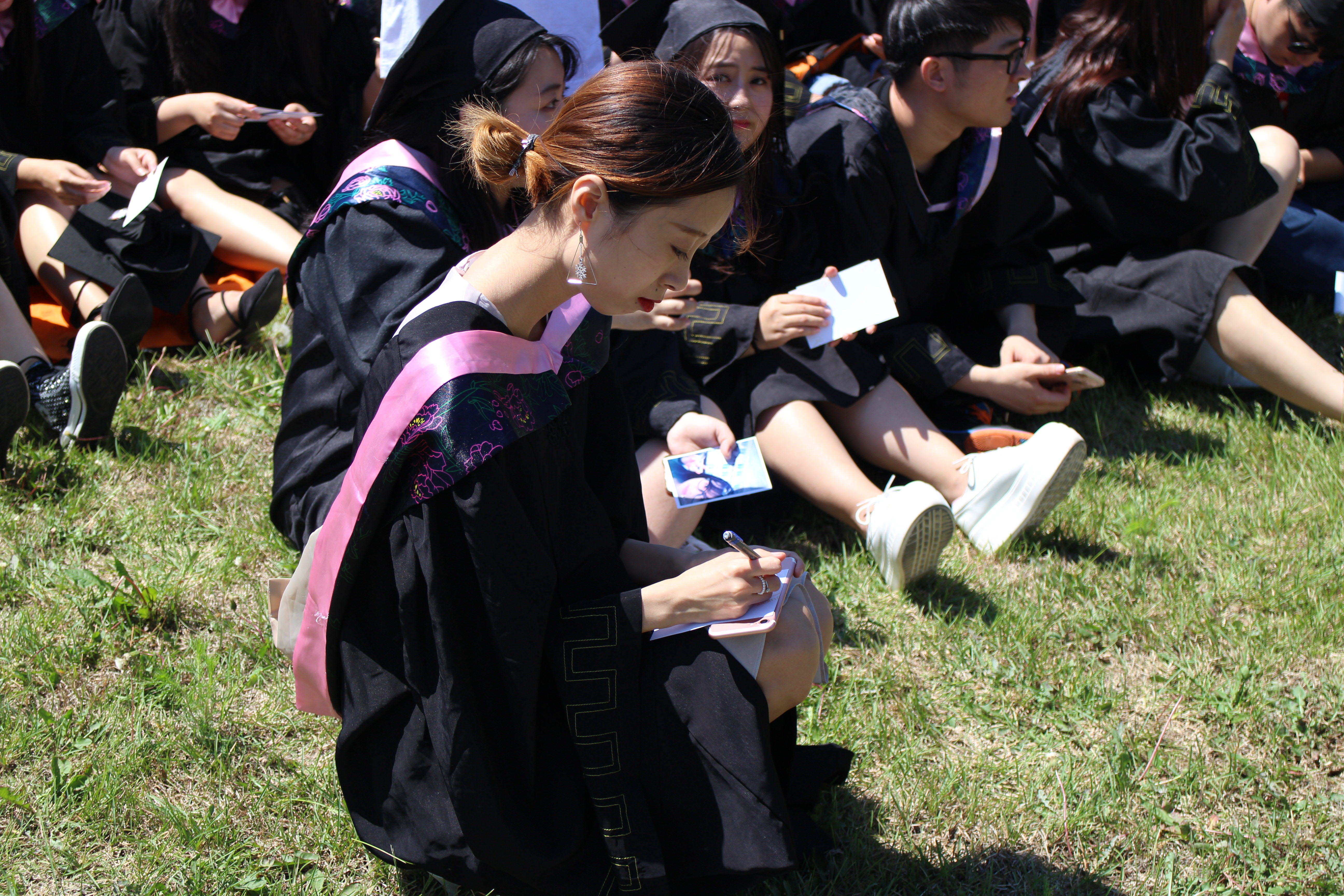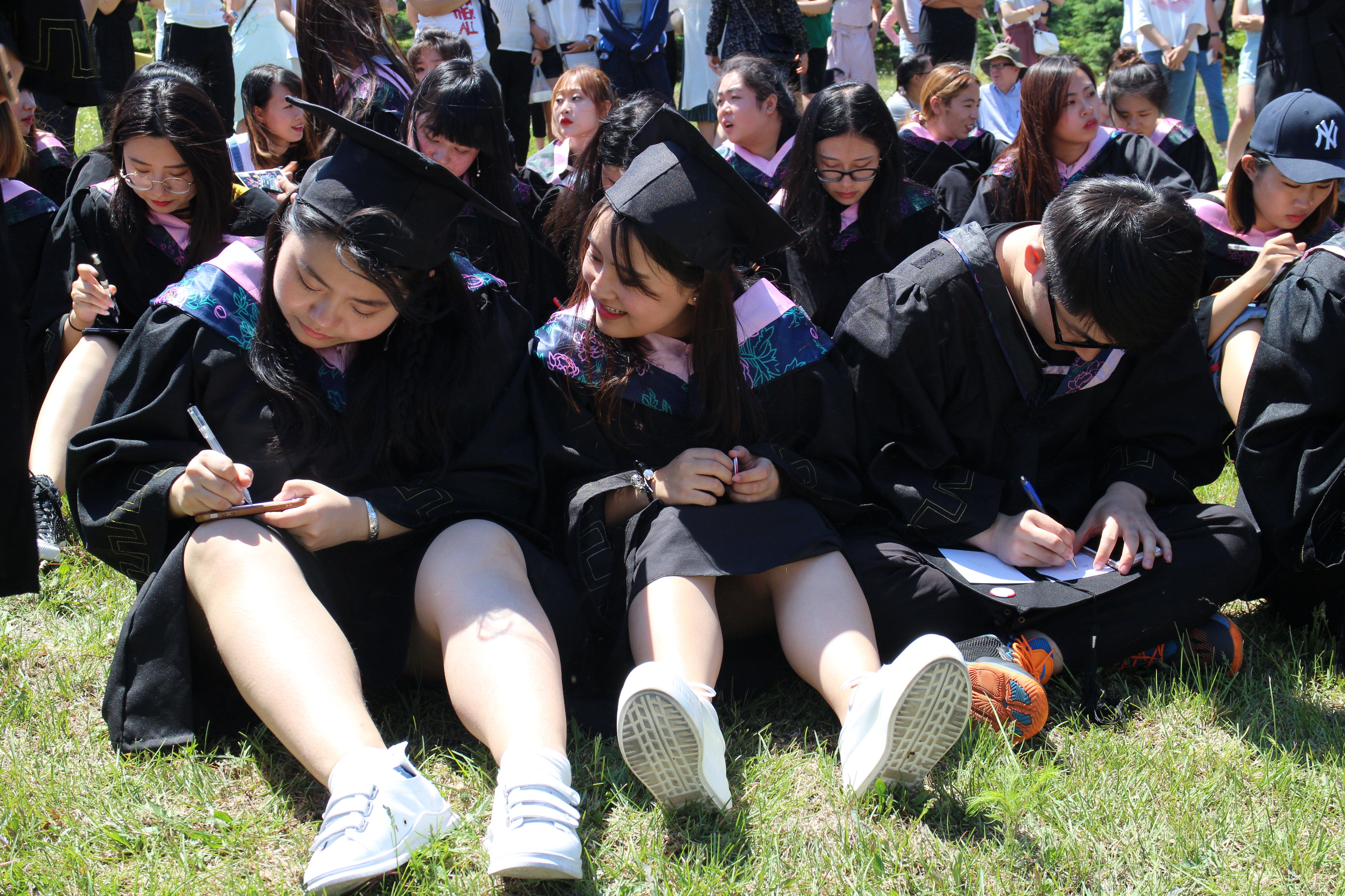 绿油油的草坪上,一系列轻快温馨的歌曲、舞蹈和游戏后,我院领导老师为学生们准备了一份特别的礼物,每一张同学们的照片上都有着老师们对其寄予的希望和祝福,这一出乎所有同学意料的举动,让同学们感受到家一般的学院带来的温暖,提升了同学们对学院的认同感和归属感。活动最后,同学们在照片上记下对学校和学院的留恋,同时立志铭记我校校训,在未来的学习和工作中既要脚踏实地,又要敢于创新,勇攀人生高峰,创造无悔人生。当所有的照片挂在墙上的一刻,所有的感恩与留恋、祝福与期盼、希望与憧憬都定格在此。至此,毕业生欢送会圆满结束。