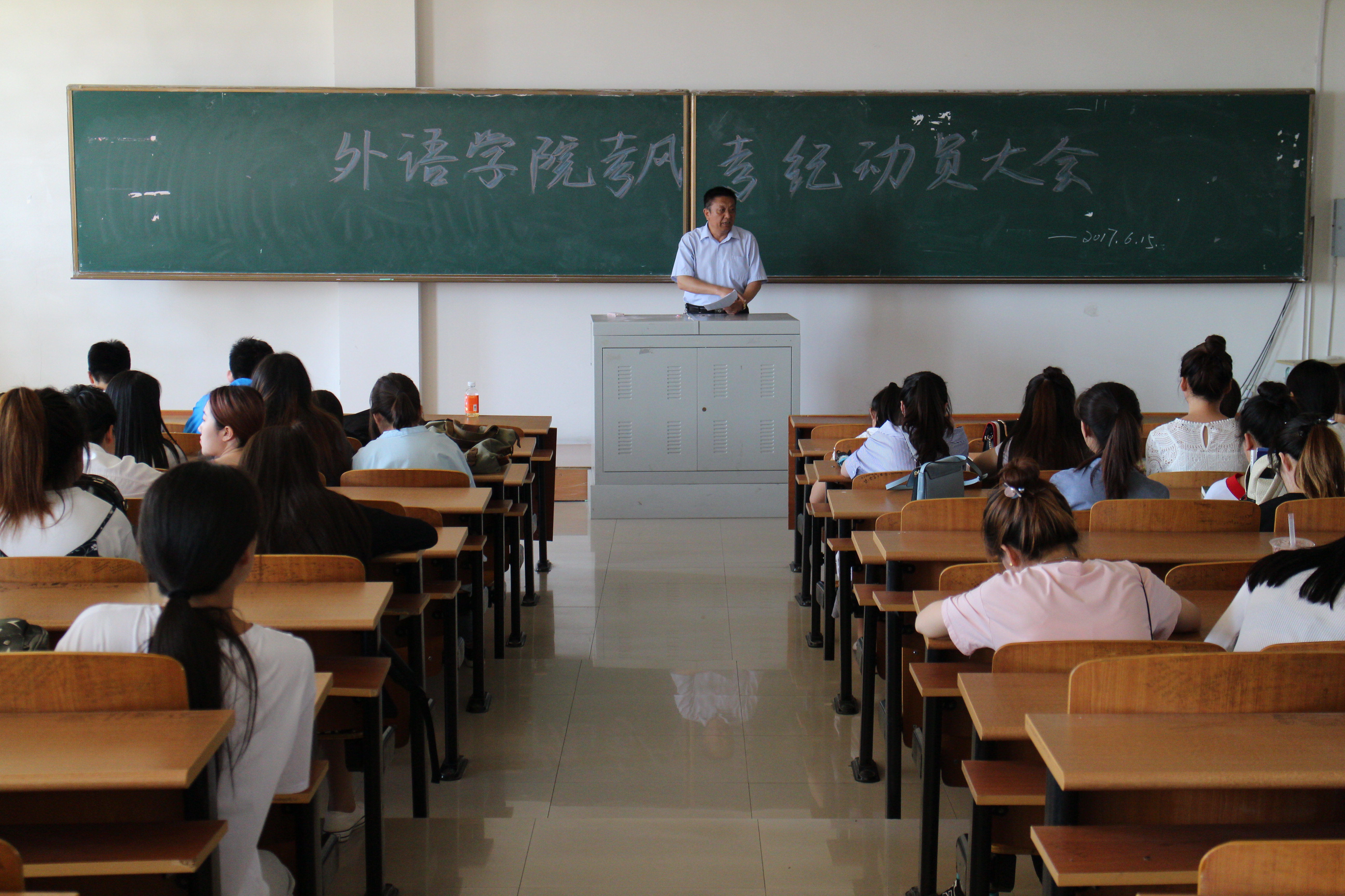 为加强学风建设,严肃学院考风考纪,确保学院教学质量。2017年6月15日中午12时,外语学院于主教517教室召开英语四六级考前动员大会,即将参加英语四六级考试的同学参加了此次动员大会。本次会议由外语学院辅导员孙晓萍老师主持,党总支书记王兹林做重要讲话。