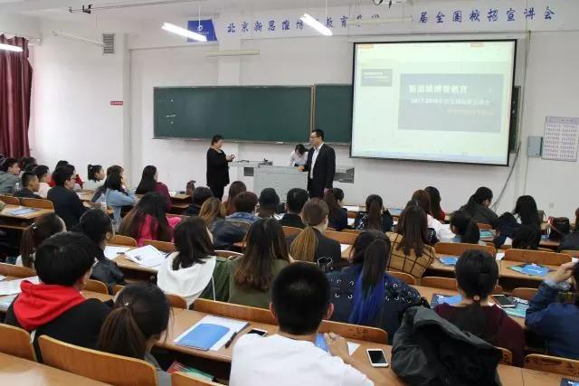 为了给毕业生们提供更好的就业机会,帮助企业寻找人才,2017年9月26日,北京新思维博智教育集团2018届全国校招宣讲会在我校主教517举行。新思维博智教育集团校长李建宇、张玲作为外语学院特邀嘉宾出席,外语学院院长王莉娅,副院长高丽娜,办公室主任田佳良和辅导员赵连琦出席本次活动。我校大四的毕业生们积极参加了此次招聘会,全场座无虚席。