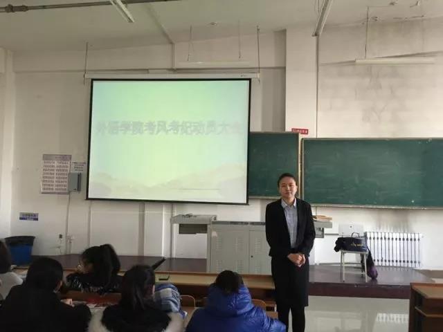 她从监考人员工作守则、考场纪律、考生须知、考场违纪处罚等方面进行了具体阐述,要求各班级对此高度重视,告诫同学们应诚实做人、诚信考试,树立良好的考场形象。最后,辅导员老师向大家送出了真挚的祝愿,动员会在一片热烈的掌声中圆满结束。