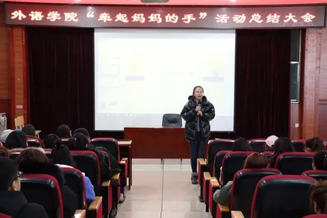 2018年3月6日,外语学院在主教518举办“牵起妈妈的手”总结大会,外语学院辅导员孙晓萍老师及全体同学一起参加并观看他们与妈妈的照片,同时同学们也讲述了关于他们的故事和心声。