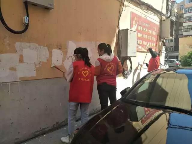为保持小区的良好环境,外语学院青年志愿者用铁刷子、小铁铲等工具对墙面上的小广告进行来回刷和反复铲。经过大家的清理,小区内面貌焕然一新。还给社区居民一个干净整洁的生活环境。