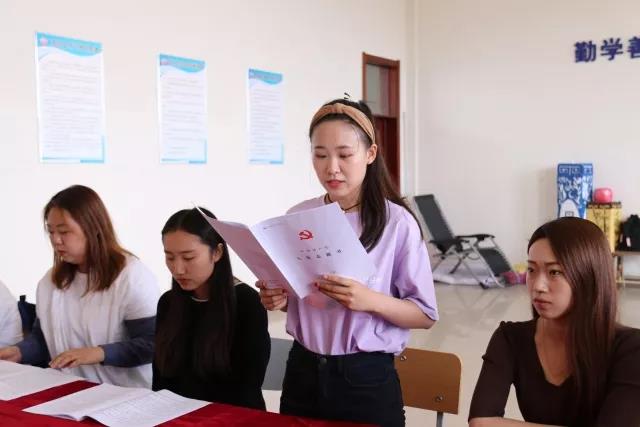 本次大会按照党员发展程序对周丽楠、王琦、刘可心、李宛阳四位同学进行预备党员接收。