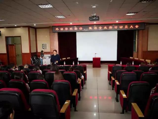 首先外语学院副院长高丽娜重点强调了实习的安全纪律问题,她要求同学们按照指导老师的安排认真完成实习.按时提交实习材料。在实习过程中希望同学们一定要注意个人形象,严于律己,宽于待人,同学们要互相关照,保证每一位同学都能学有所获。