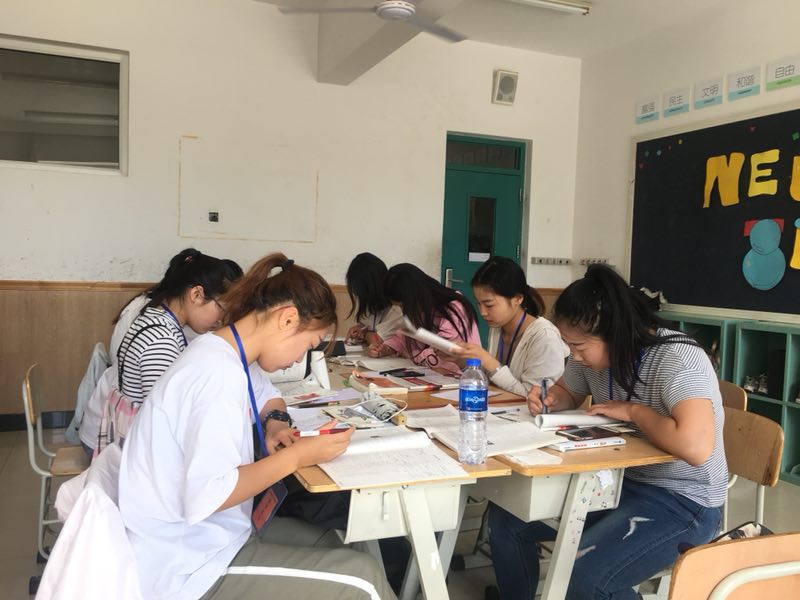 实习伊始,同学们严格遵守实习学校的规章制度,室内换鞋、走廊一侧走、低声交流,同时也通过小组的形式与各个老师联系沟通。实习中,同学们帮助老师完成工作任务,批改学生作业,并且积极旁听老师讲课,认真做课堂教学笔记。同学们虽然对这些工作有些生疏,但是热情高涨,积极认真。万邦学校的老师也帮助同学解决了实习中遇到的问题,让同学们在实习中收获更大。