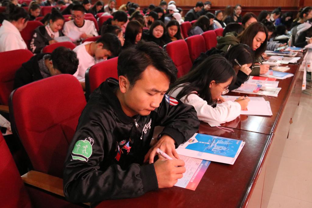 在讲座现场,每位同学领到了一份讲义,谭老师通过讲义中的内容结合当前四六级与考研形式与同学们积极互动,当场将所讲方法运用于实践,使在座的学生都对四六级考试和考研充满了信心,同时也学习到了非常宝贵的方法和策略。