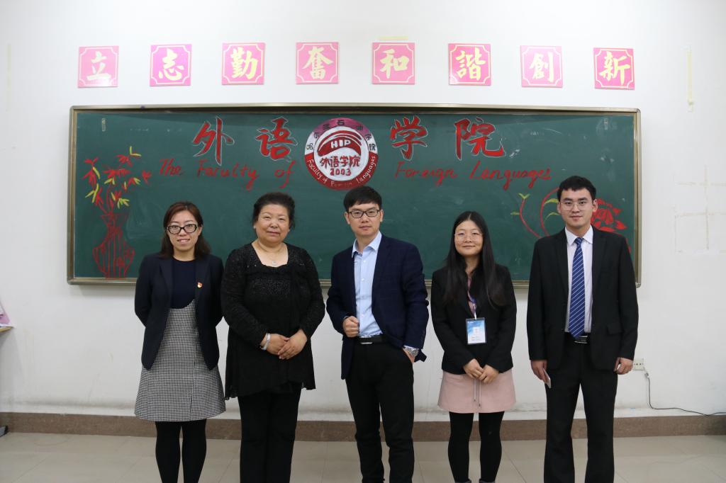 讲座后,谭老师与外语学院王莉娅院长等做了简短的交流,谭老师对我校学生的学习热情和态度表示了高度的肯定,王院长也向他介绍了我校的考研情况和学生的学习情况,向谭老师能够来到我校为学生举行公益讲座表示真诚的感谢。