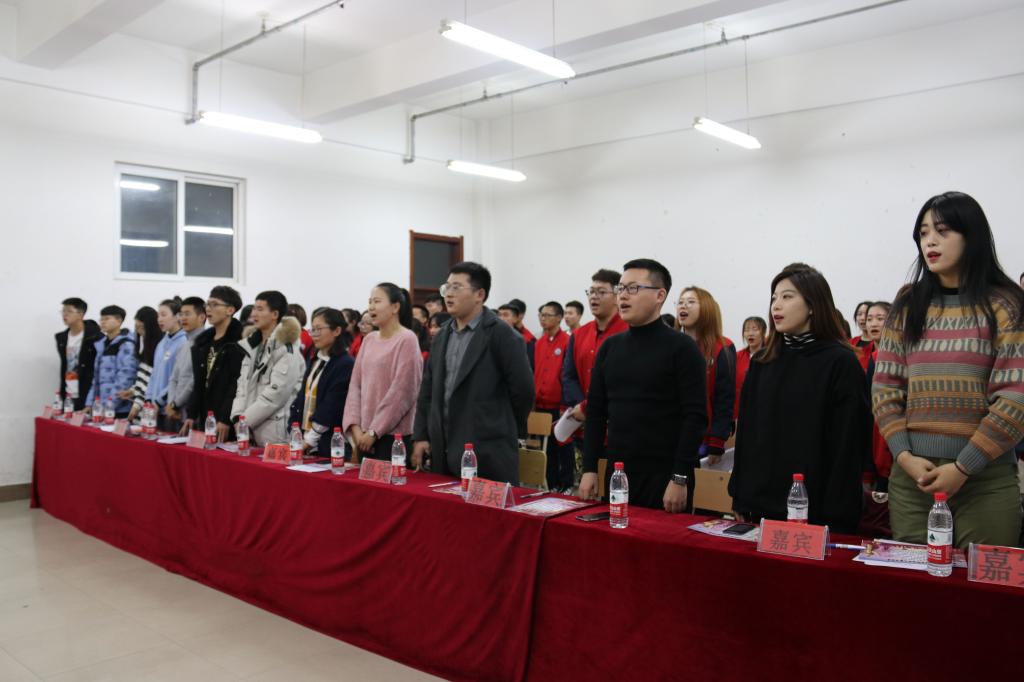 首先,主持人王志强、敖一鸣上台在宣布本次团活正式开始。全体同学唱响《国歌》。