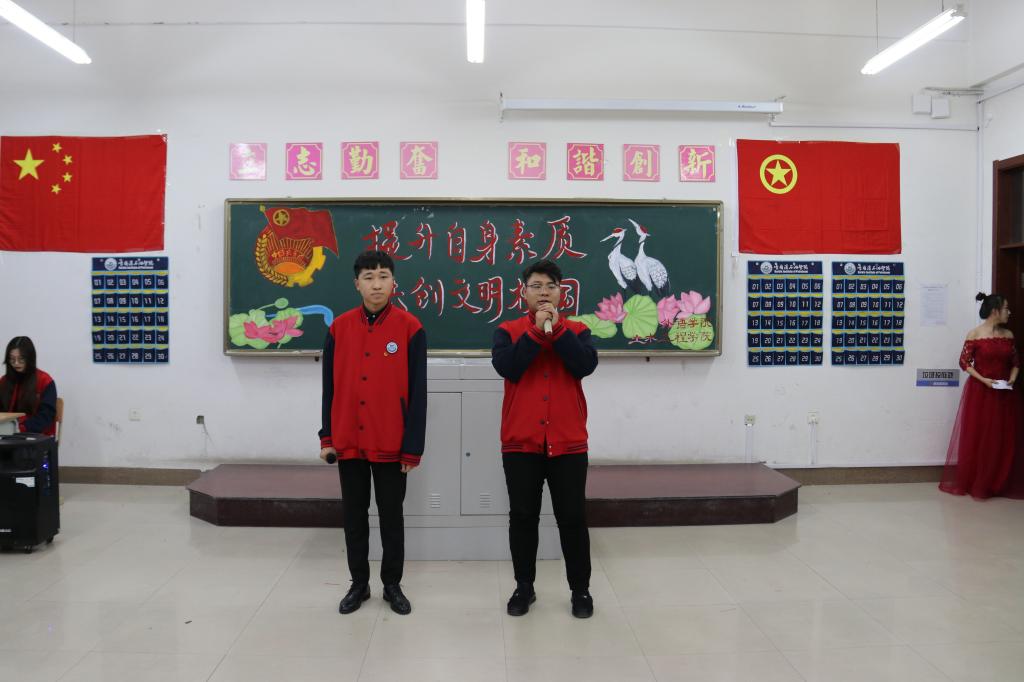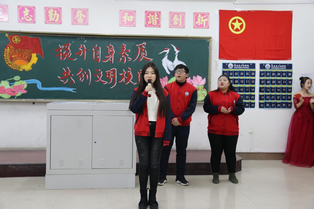 随后,王志强、高航带来的歌曲《龙的传人》表达了对祖国热爱;由张智斌、郭洪龙和邵旭阳带来了情景剧《文明校园》让大家感触很深;之后许佳航、刘彦彤表演中英俄语朗诵充分展现了外语学子多才多艺、自信昂扬的语言风采。接下来由兰绣妤、高竞妍、宋明哲带来的小品《文明礼仪在心中》,让大家在欢笑中反思。毛佳慧带来的民族舞《礼仪之花》动作柔美、长袖轻佛,舞姿舒展、颤动律延绵连贯。最后,在全体昂扬的共青团团歌的歌声中,本次团活正式结束!