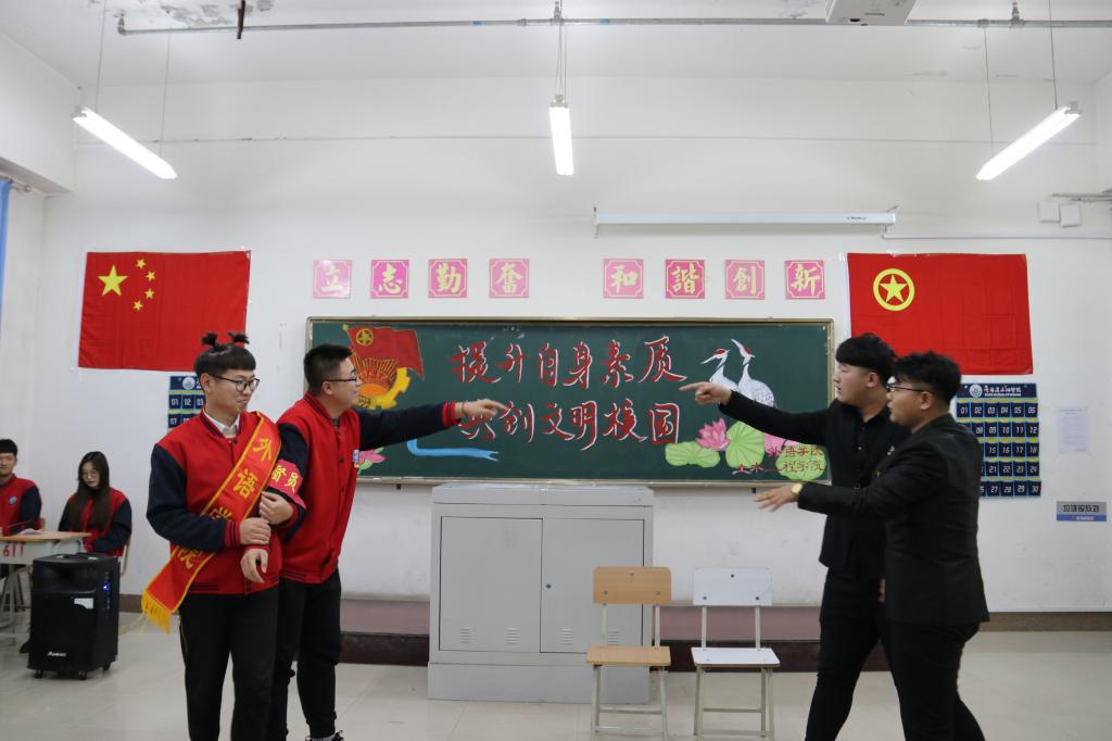 为引导学生践行社会主义核心价值观,讲文明、懂礼仪,弘扬时代新风,11月29日,2018级俄语系学生代表外语学院于主教610教室参加了以“提升学生素养,共建文明校园”为主题的团活大赛。出席此次活动的评委有校团委秘书处主席团以及各二级学院团总支副书记。