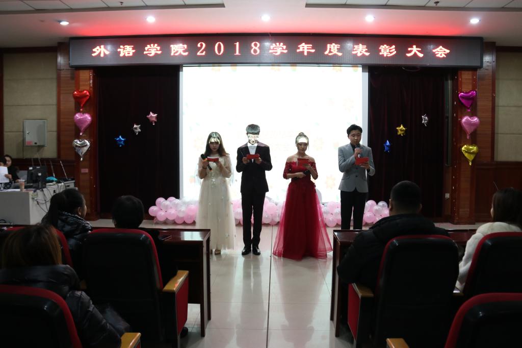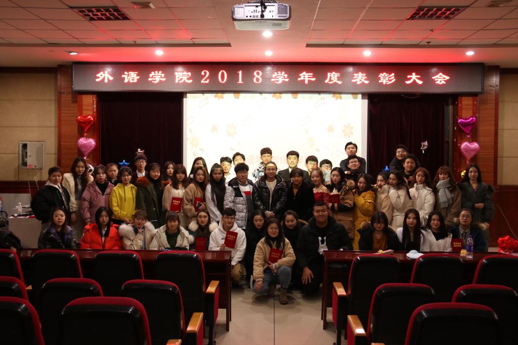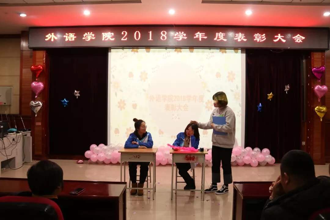 首先全体师生观看了2018年外语学院学生活动纪录片视频,它记录了外语学院这一年来的点点滴滴,展示了我院学生在学风建设与校园文化建设中取得的优异成绩,体现了外语学子追求卓越、永不言败,团结协作、顽强拼搏的良好精神风貌。