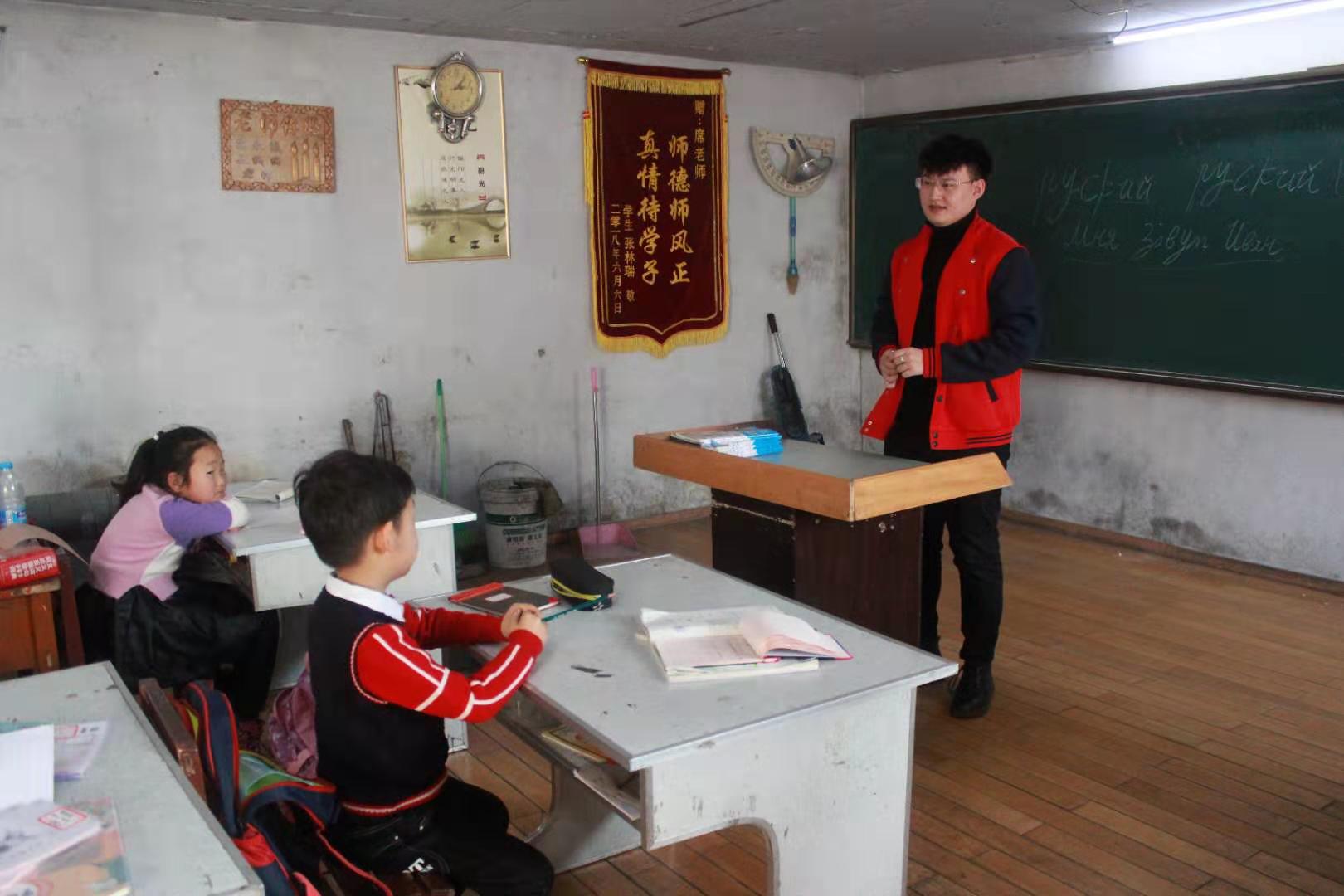 该学校位于哈尔滨市松北区松浦镇,学校的学生主要以留守儿童为主。活动期间的主要内容是为孩子们讲解一些俄语的基本语句单词、法语的基础用语、一些外国的风俗习惯等趣味性和实用性相结合的内容。志愿者们风趣幽默的教学方式、细心的教导吸引了孩子们的目光并且深受孩子们的喜爱。志愿者们考虑了同学们的年龄差,在备课方面做了精心的准备,比如,在俄语内容上,志愿者们在授课内容上注重由浅入深,保证让每一个小朋友都学到知识。通过短时间内的接触,志愿者们与小朋友们的互动非常愉快。志愿者的到来,不仅为孩子带来了许多课外知识,也为孩子们送来了更多的欢乐。