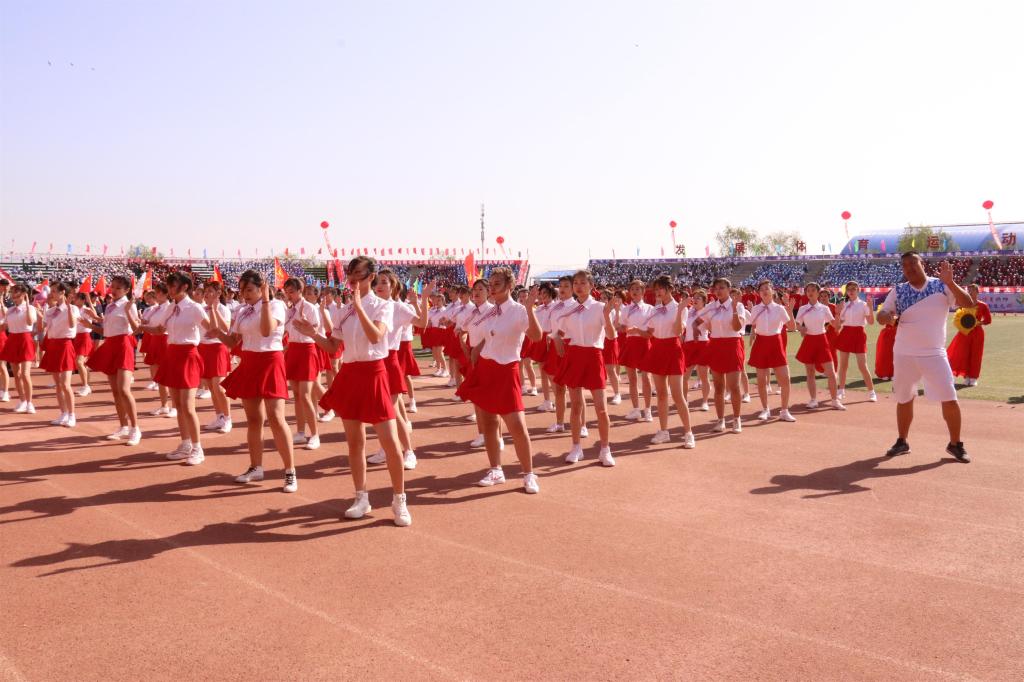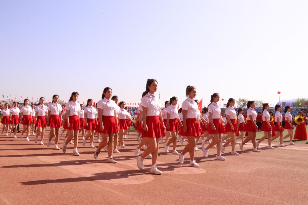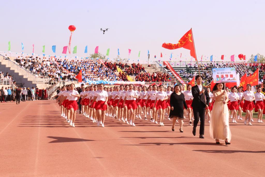 在这饱含花香的微风里,体育场内礼炮鸣响、彩旗飘扬。在外语学院院长王莉娅的带领下,外语学子与教工检阅队,迈着整齐的步伐向主席台走来。