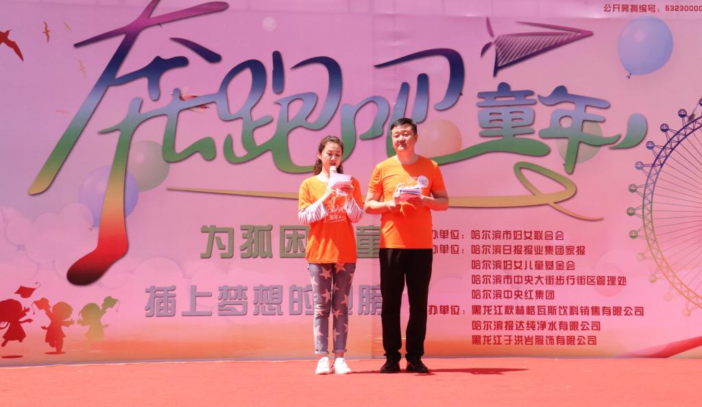 2019“奔跑吧童年,为孤困儿童插上梦想的翅膀”公益募捐活动,于6月1日11:00在中央大街中央商城门前举行启动仪式。本次活动由哈尔滨市妇女联合会主办,哈尔滨日报报业集团《家报》、哈尔滨妇女儿童基金会、哈尔滨市中央大街步行街管理处、哈尔滨中央红集团承办,黑龙江秋林格瓦斯饮料销售有限公司、哈尔滨报达纯净水有限公司、黑龙江于洪岩服饰有限公司协办。