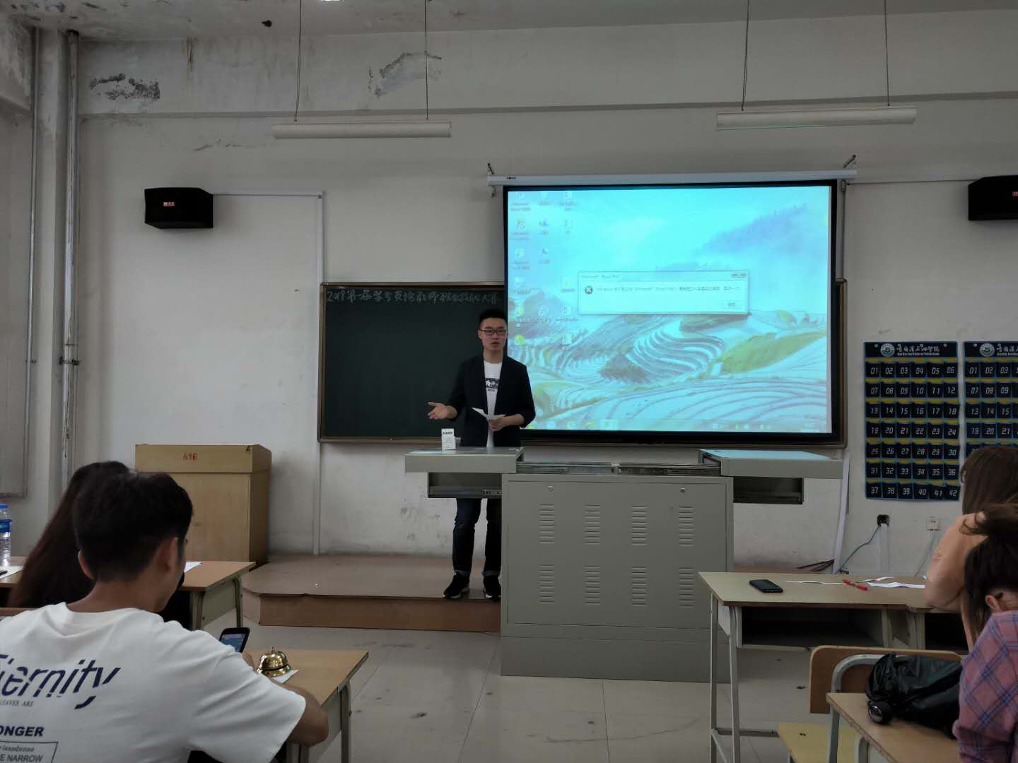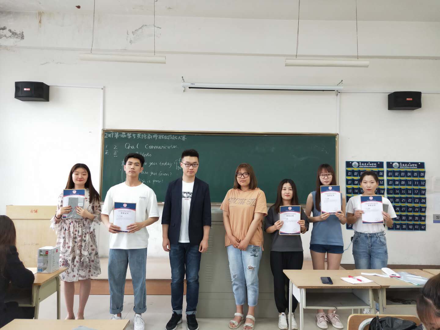 为了提高同学们对英语教学的认识,增强对英语教学的能力,2019年6月14日,外语学院在615成功举办了“2019第一届学生英语教师职业技能大赛”,并邀请了外语学院的黄迪老师和孙立轩老师担任本次比赛的评委。