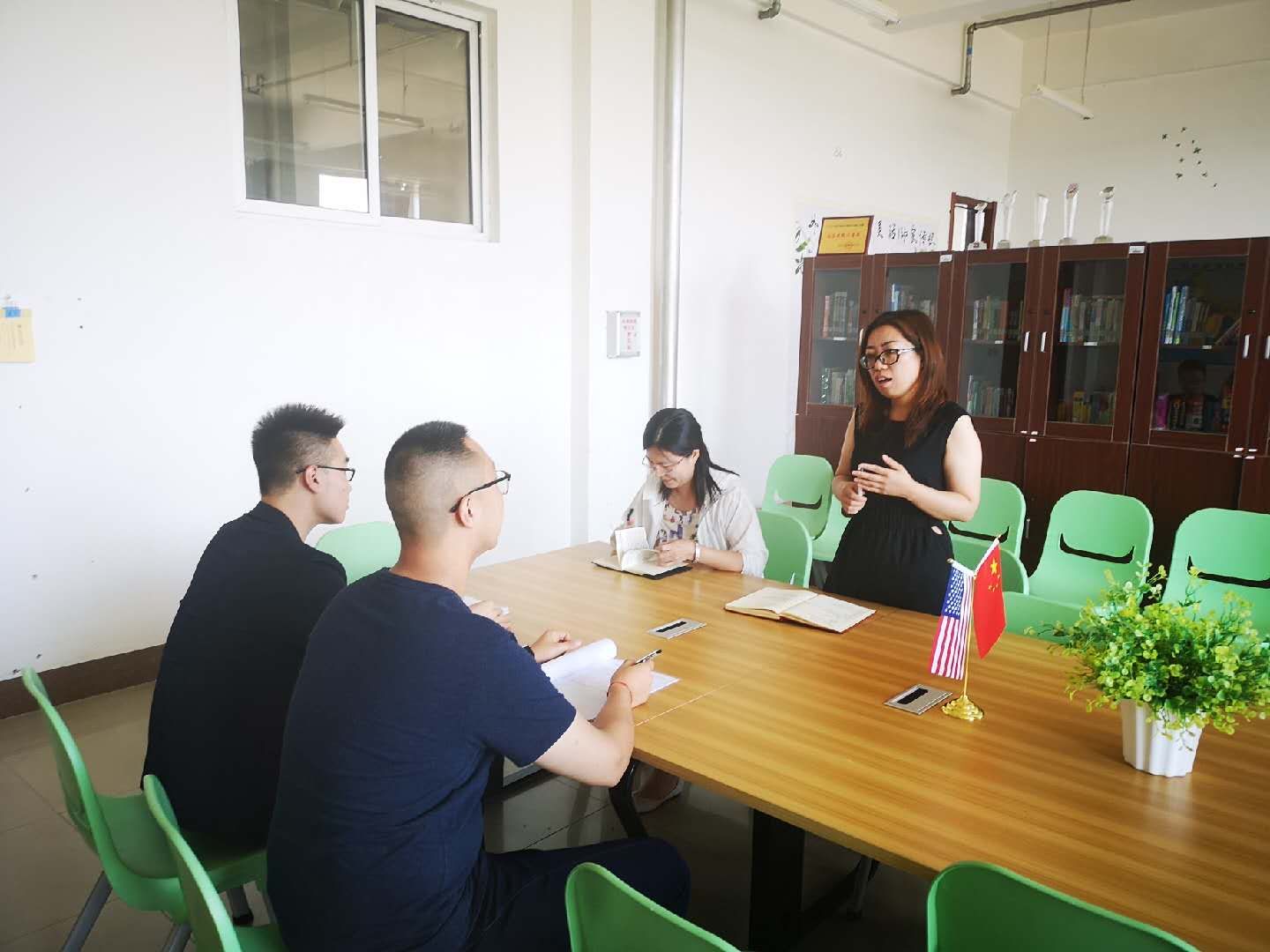 全体英语教师教室召开了本学期的学术会议分享感悟交流会。本次会议的主持和主讲为外语学院副院长高丽娜。她在会议中,主要分享了全国大学英语院长系主任高级论坛的会议主要内容。本次会议也使得我部们了解到全国外语教学的最新动态、教改方向、新型教学模式、以及如何借鉴他校成功的教学模式和案例,推动我校英语教学改革,顺应学校转社、应用型人才培养的总体要求。