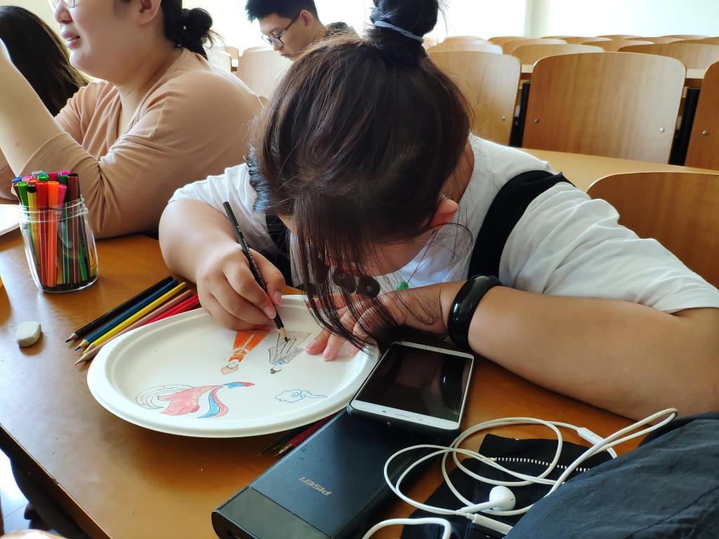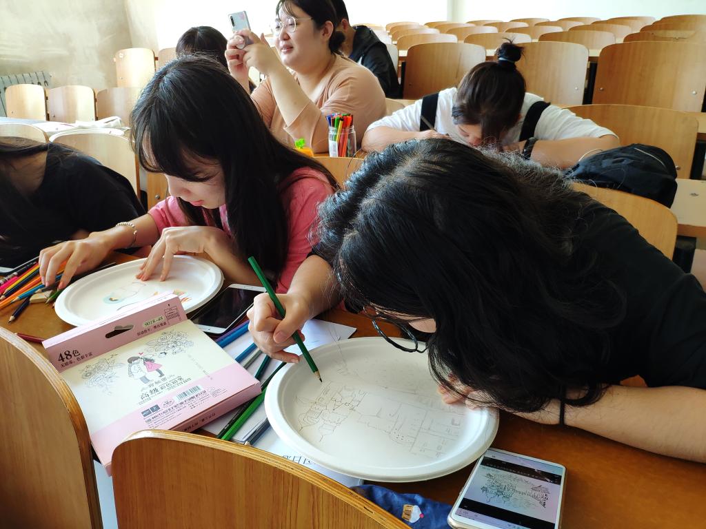 活动伊始,外语学院俄语专业王丽娜老师为16级同学们认真讲解中俄建交历程及中俄两国的发展。随后,王丽娜老师带领同学们展开想象,积极构思,对纸盘进行大胆创作,画出每位同学心中对中俄两国最具深刻印象的特色图案。
