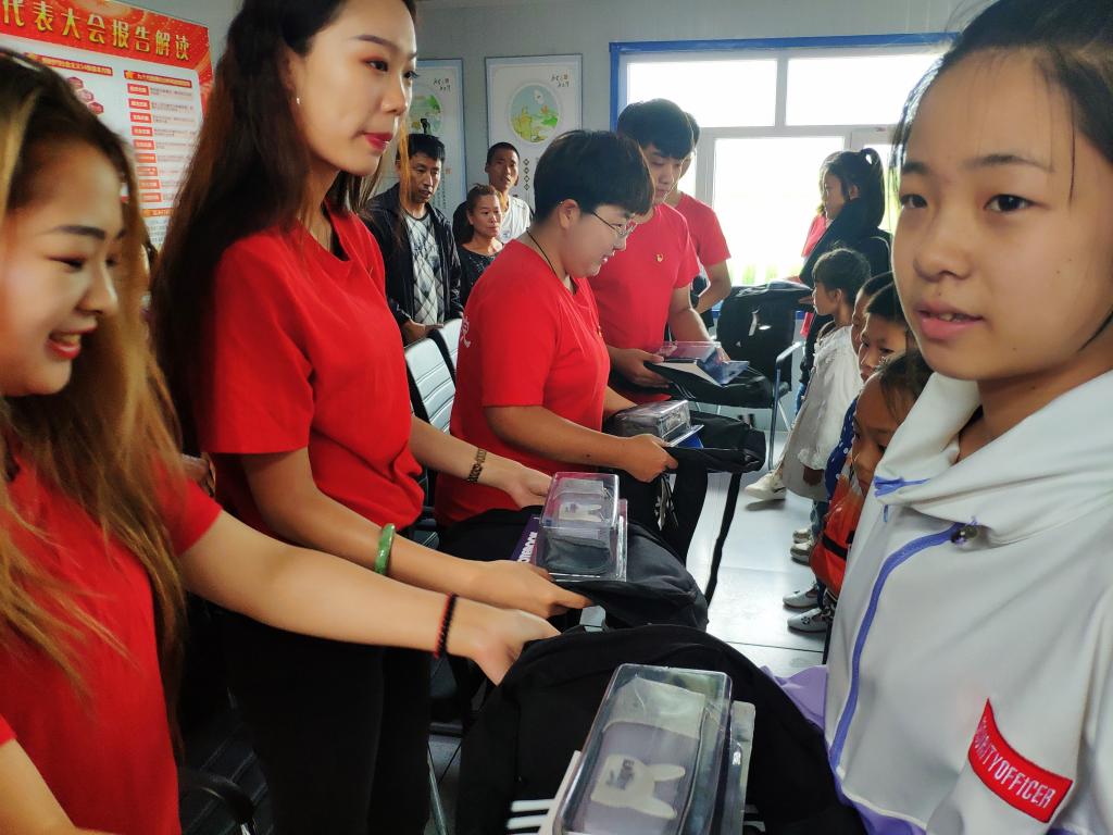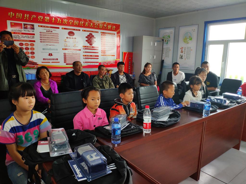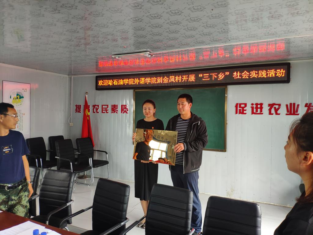 在揭牌仪式座谈会上,加信镇党委副书记谷成悦致欢迎词,哈尔滨石油学院外语学院党总支副书记孙晓萍向金凤村授予哈尔滨石油学院外语学院“三下乡”社会实践基地牌子,随后大家介绍了本次暑期社会实践活动情况,加信镇党委副书记,镇长高岩就全镇脱贫攻坚工作及需要学校帮助解决的事项作了深入阐述,10位大学生志愿者代表分别与金凤村部分贫困家庭学生结成了帮扶对子,并向贫困学生捐赠学习用品。