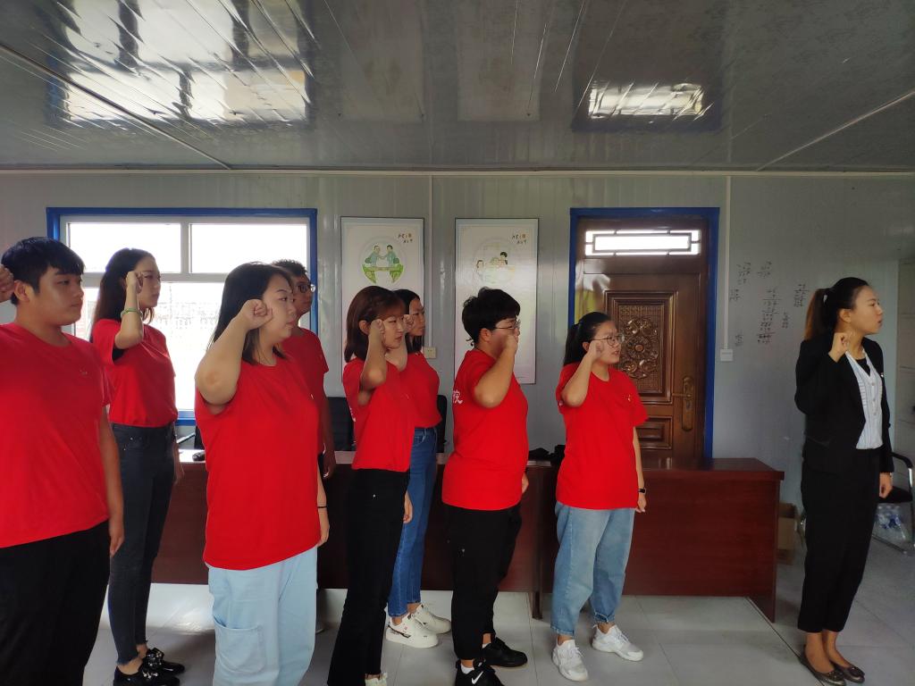 党课结束后,由孙书记领誓,新老党员们再一次举起右手,重温入党誓词。最后,延寿县电视台记者对孙晓萍书记和学生党员代表周美含同学进行了采访,了解我院此次三下乡活动的内容与期望效果。