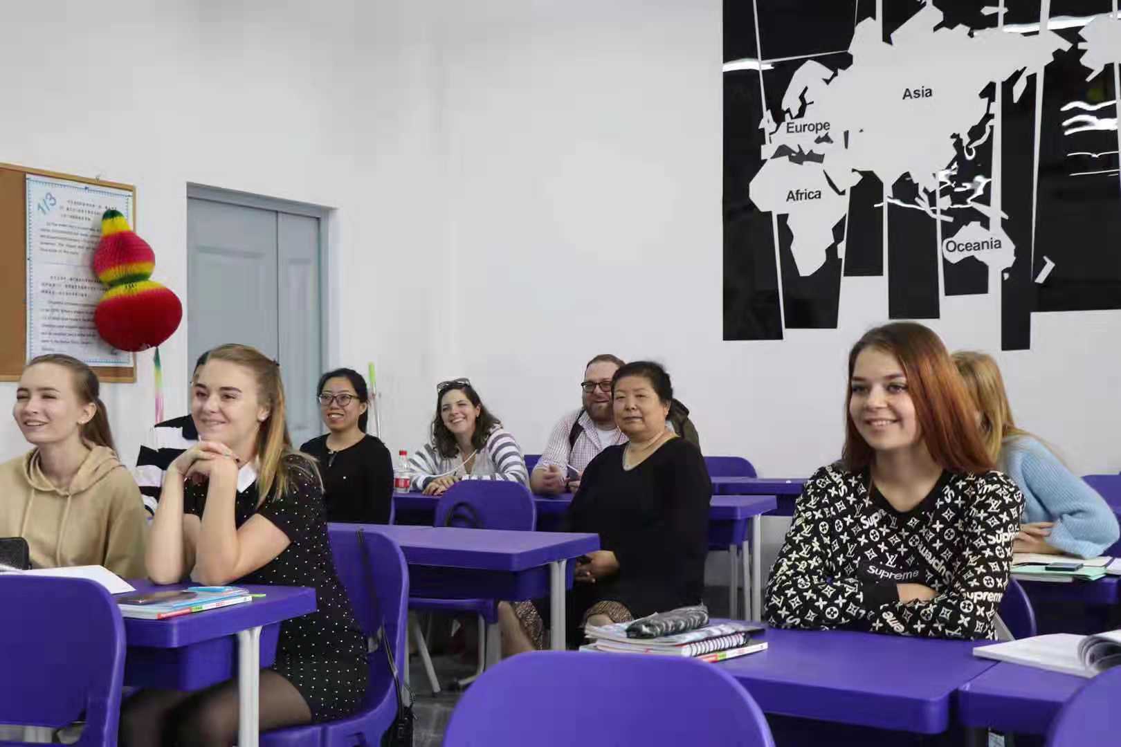 会谈后,在王院长的带领下,嘉宾们饶有兴趣地参观了我院的外语课堂,对法语、高级英语和基础俄语课程的教学大加赞赏。