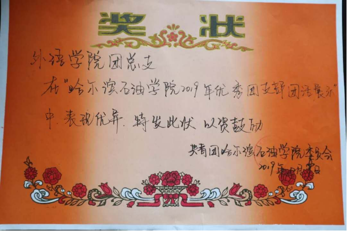 为增强广大团员干部工作的凝聚力和战斗力,提升共青团各团组织活力,哈尔滨石油学院校团委于12月9日晚上5:20在图书馆举行了2019年优秀团支部团活展示活动,外语学院团支部代表参加团活展示。