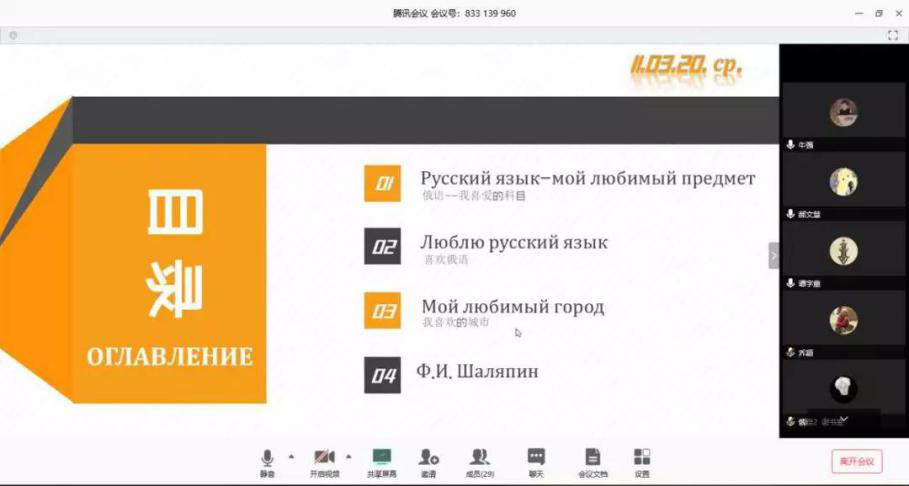 2020年3月13日晚,外语学院俄语系召开了疫情期间线上教学工作研讨会。在视频会议里,乔雪主任总结了俄语系前两周的教学工作进展,同时每位老师也交流了教学中的感悟和存在的问题。