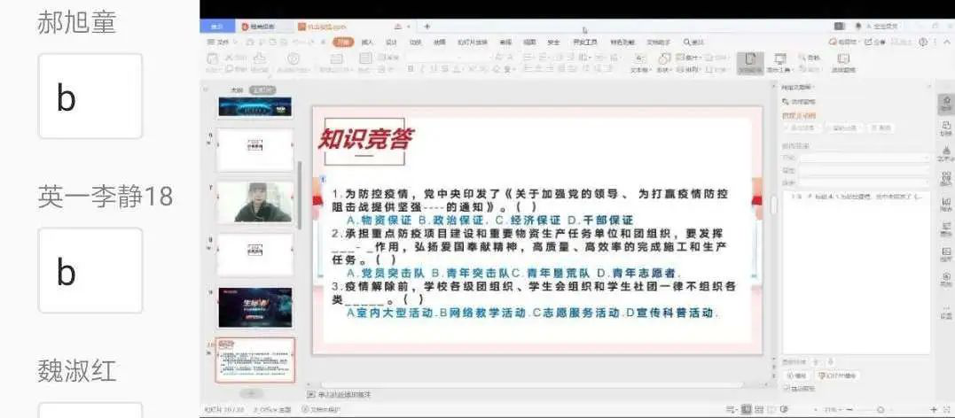 外语学院首次线上团活——“抗击疫情,你我同行”到此圆满结束。在抗“疫”非常时期,成功开展线上团活不仅彰显了外院学子的优秀品质和家国情怀,也增强了同学们“战疫必胜”的信心。疫情终会过去,让我们一起静候春暖花开!