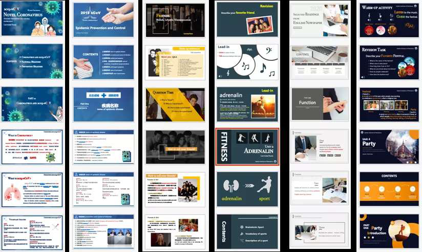 在PPT课件的制作方面,我根据每节课不同的主题,精心制作了很多不同种类,不同风格的课件,在全民抗疫的背景下,我特地选用了很多与抗击疫情以及防控相关的课件主题,在教学内容上,也有所侧重,旨在激发学生的学习兴趣,拓宽学生的国际化视角,培养学生的家国情怀。