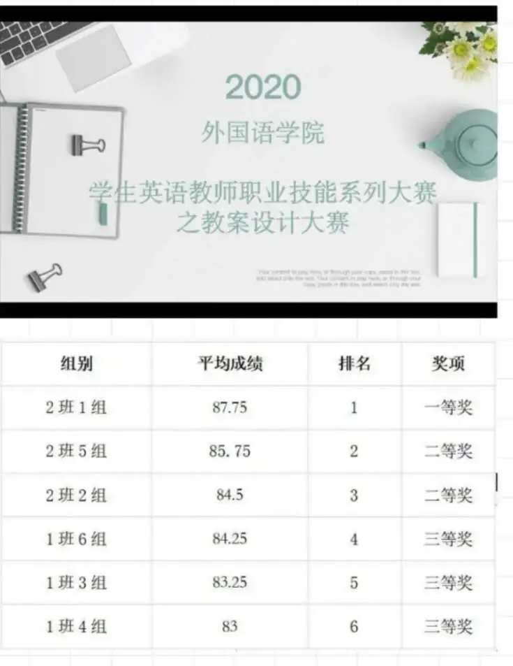 2020年4月20日-5月10,外国语学院组织了学生英语教师职业技能大赛之教案设计大赛。经过专家评审团公正、严谨的评选,最终英语17-2班梁姗姗等6位同学组成的团队荣获一等奖。