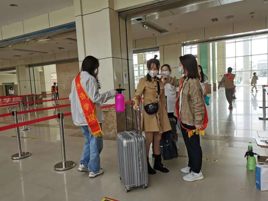 伴着蒙蒙细雨,凌晨五点,学院领导、辅导员和工作人员在学校南门做好了迎接返校学生的准备。在工作人员的引导下同学们扫描“健康码”、测温并找到各自学院登记,进行核酸检测后陆续进入校园。尽管返校途中遭遇暴雨、大风侵袭,但学院领导、辅导员老师和工作人员仍尽职尽责迎接返校学生,同学们也丝毫不改返校的热情,收拾好寝室的同学也自发做志愿者去迎接同学。学校通勤车将学生安全送到公寓门口,各公寓门口同样也设置了严格的扫码、测温检查。回到寝室后,同学们打扫整理、准备书本,为新学期做好充足准备。