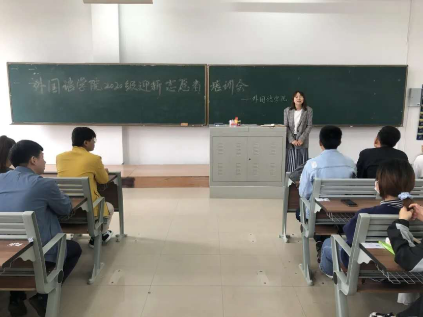为更好的配合学校在迎新期间做好疫情防控、新生入学等各项工作,9月22日中午,外国语学院在主教517召开2020年迎新志愿者培训会。本次会议由党总支副书记孙晓萍主持,外国语学院17级、18级、19级全体志愿者参加会议。