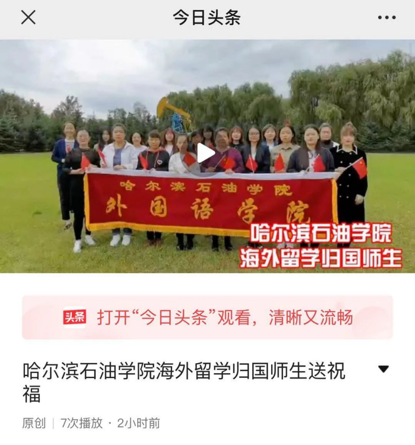 在院长王莉娅教授的带领下,哈尔滨石油学院外国语学院的留学归国师生,以拍摄祝福视频的活动积极配合黑龙江省欧美同学会的活动倡议,祝福祖国母亲生日快乐,繁荣昌盛!
