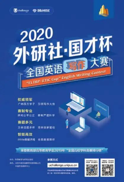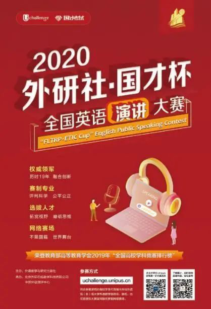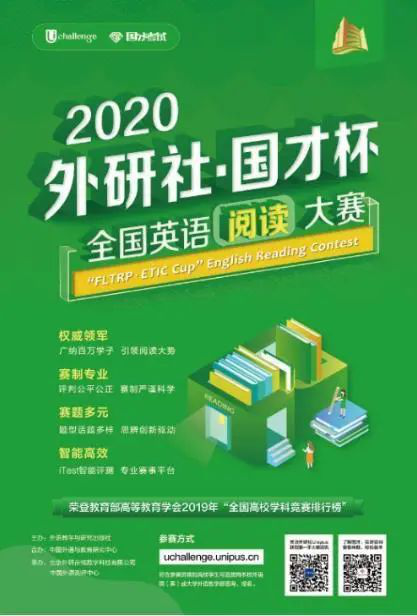 “外研社·国才杯”全国英语阅读/写作/演讲大赛校选赛马上开赛了,欢迎广大同学们积极参加,初赛报名均在Uchallenge官网进行,报名截止时间是10月10日。