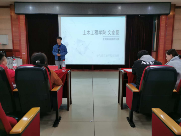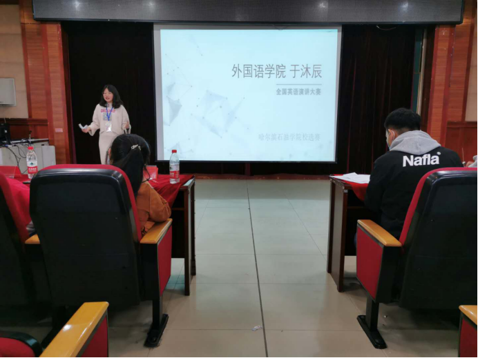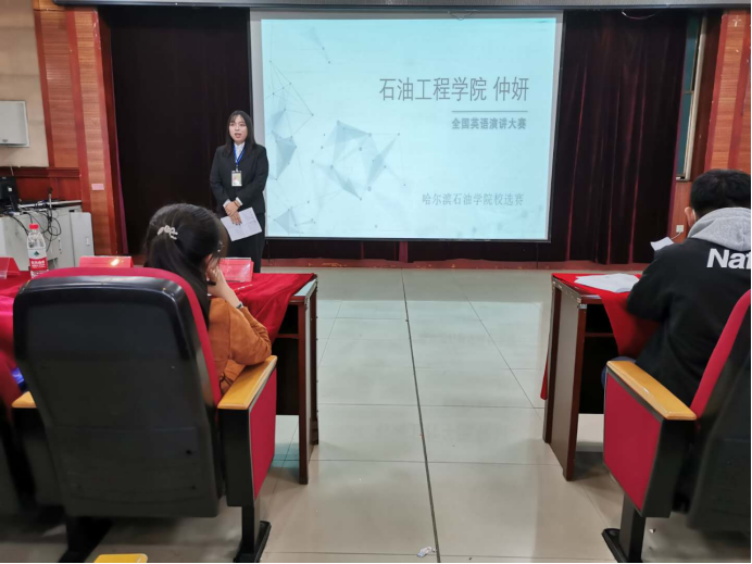 为提高大学生英语口语水平,丰富校园文化生活,提高我校学生英语口语能力及现场演讲能力,10月13日下午,由外国语学院承办的“外研社•国才杯”全国英语演讲大赛哈尔滨石油学院校选赛在主教518火热举行。出席本次比赛的评审老师有孙立轩,樊明亮,朱明艳,王兴华,贺鑫。