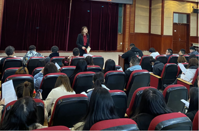 会议伊始,外国语学院副院长高丽娜做了实习动员。她从毕业实习的意义出发,依次详细讲述了毕业实习的相关内容和要求,重点提到了实习的相关考核及注意事项,让毕业生们对毕业实习有了更加深入的了解与认识。高院长还强调大家一定要提高思想认识,端正实习态度,在实习实践中学为所用、锻炼能力、增长才干,发扬虚心好学、吃苦耐劳、团结协作的精神。