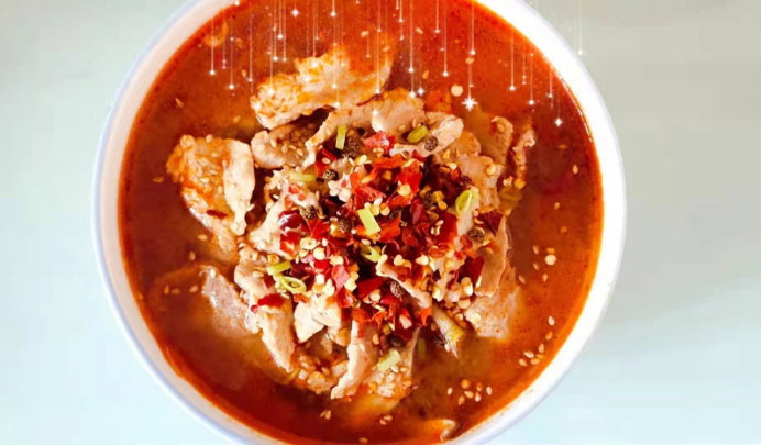 “寒冷的冬天,来份水煮肉片,配上大米饭 ,保证吃的饱饱的,暖暖的!”