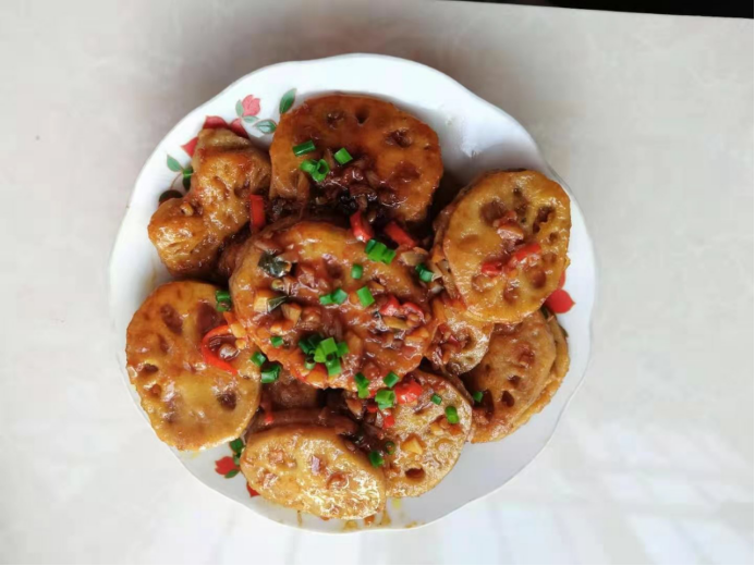 “藕盒清脆爽口,酱料入嘴满口留香”