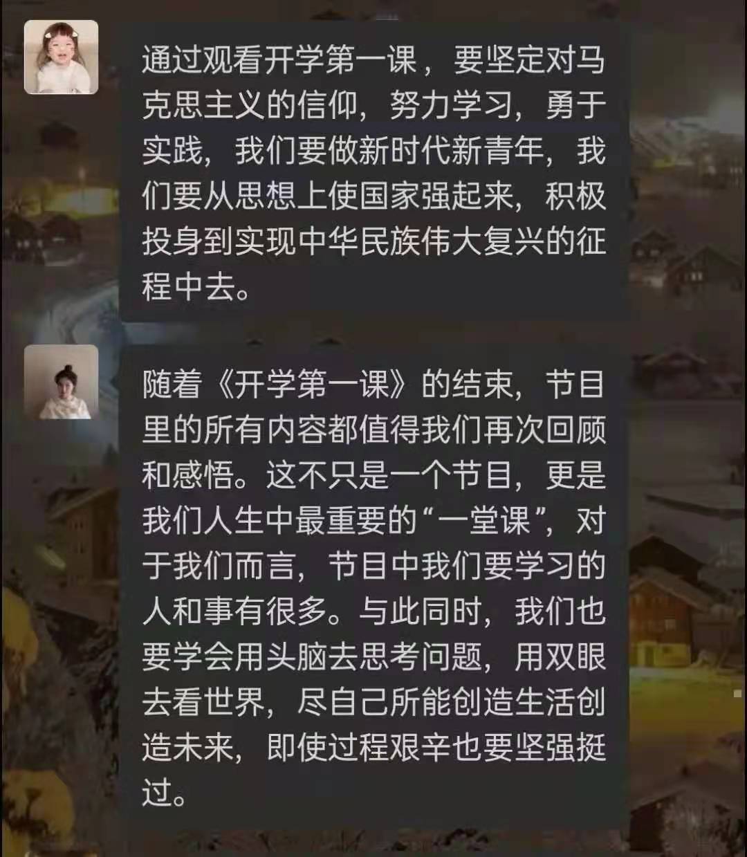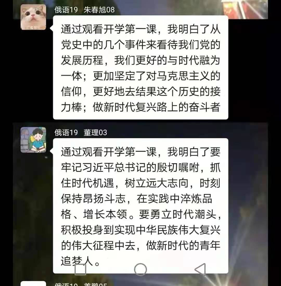 通过学习“开学第一课”,深深的触动了同学们浓厚的爱国情感,也使学生在新学期学习专业课程的同时,充分认识到党史学习教育的重大意义,争做有为青年,为社会贡献出自己的力量。
